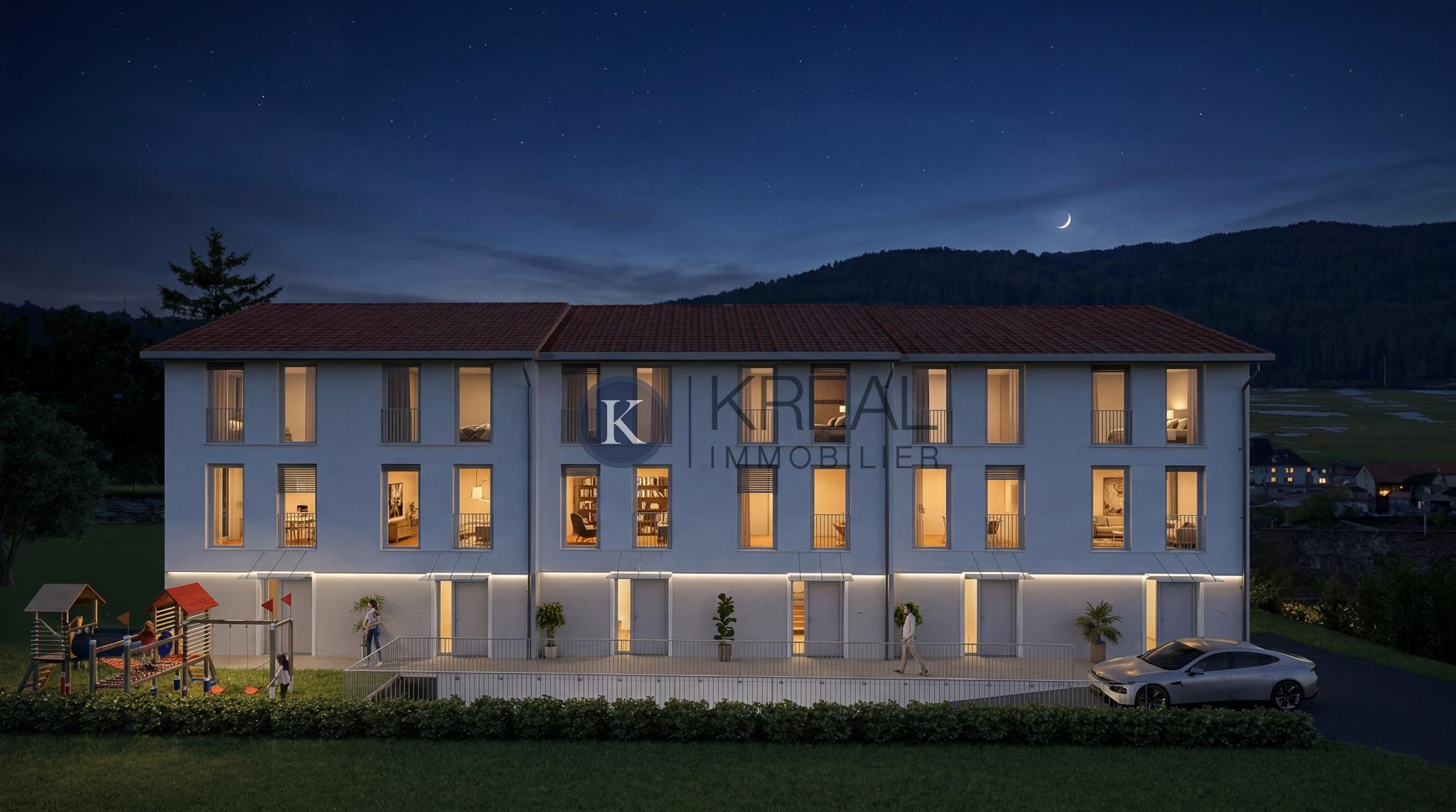 Kreal Immobilier vous présente en exclusivité un projet résidentiel unique composé de 6 villas contiguës en PPE, situé dans un quartier calme à la Rue du Simplon 8 à Vallorbe. Chaque villa est pensée pour offrir confort, luminosité et modernité, avec la possibilité pour les futurs acquéreurs de personnaliser les matériaux et finitions selon leurs envies. Le permis de construire est déjà obtenu et la livraison est prévue fin 2027 - début 2028.